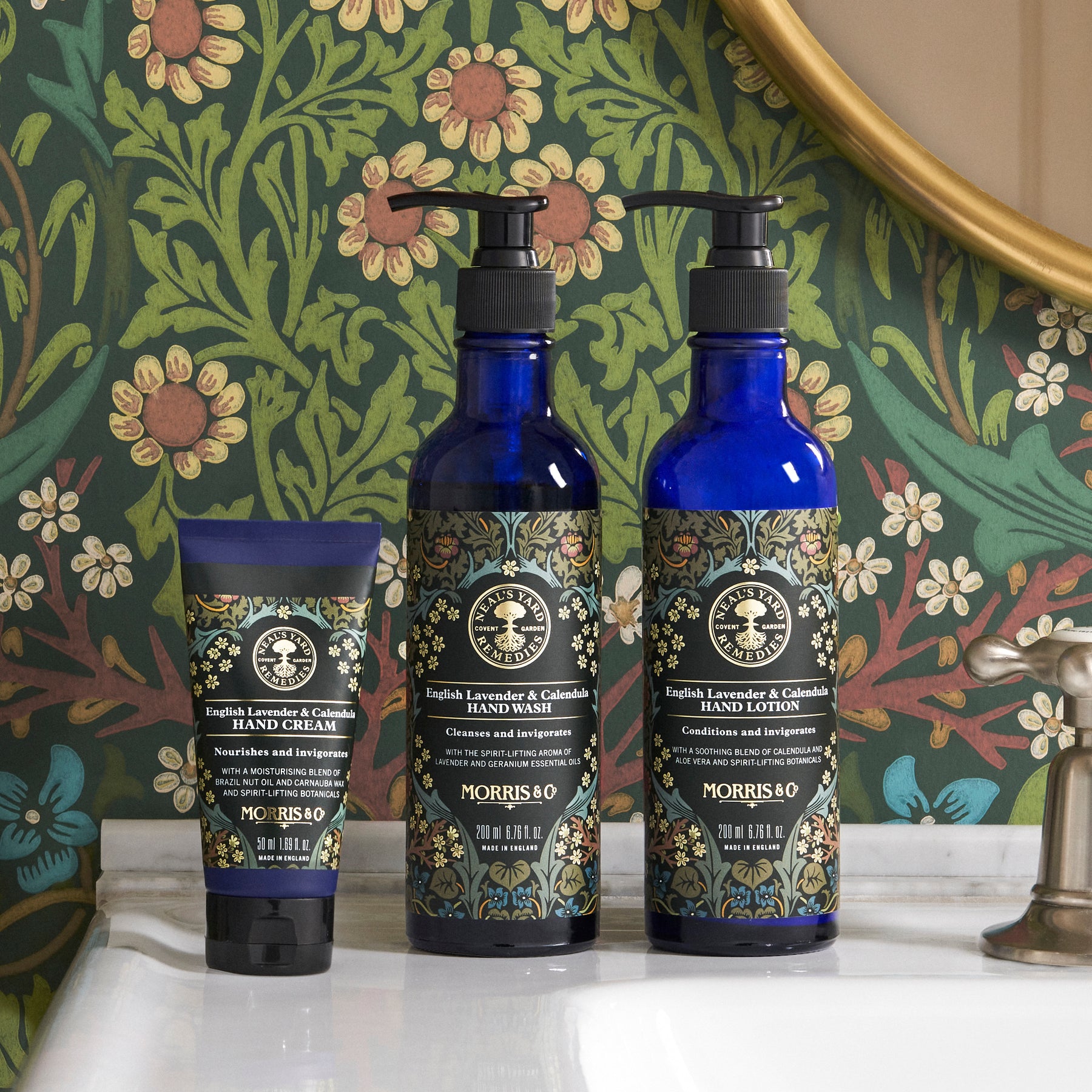 - Presented in our iconic blue bottles, wrapped in Morris & Co.’s Blackthorn print featuring gold detailing